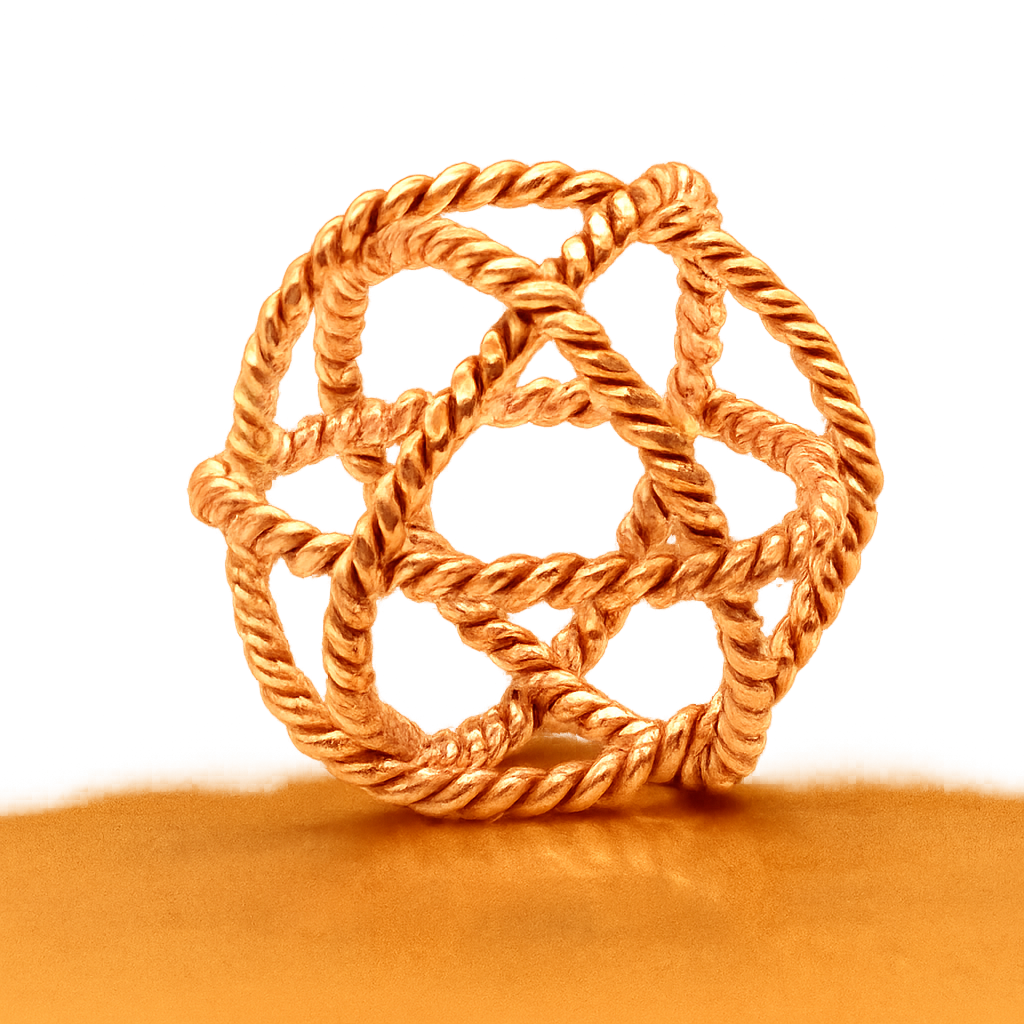 Notes: If your Generator ever gets "bumped" or dropped out of round while in use, you can move or bend the individual Rings gently back into place. Avoid pressure on the bronze welds, though we have a lifetime guarantee on the welds. Generators do not need perfect symmetry to be fully functional. Due to the weave pattern of the four Rings, the spheres are also not perfectly round.